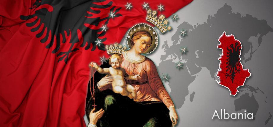 Në emër të Atit e të Birit e të Shpirtit t’Shenjt. Amen. O e madhërueshmja Mbretëreshë e Fitoreve, o Mbretëreshë e qiellit dhe e tokës, para emrit tënd gazmojnë qiejt e dridhen thellësitë, o e lavdishmja Mbretëreshë e Rruzares, ne bijtë e tuaj të devotshëm, të mbledhur në tempullin tënd të Pompeit (në këtë ditë të