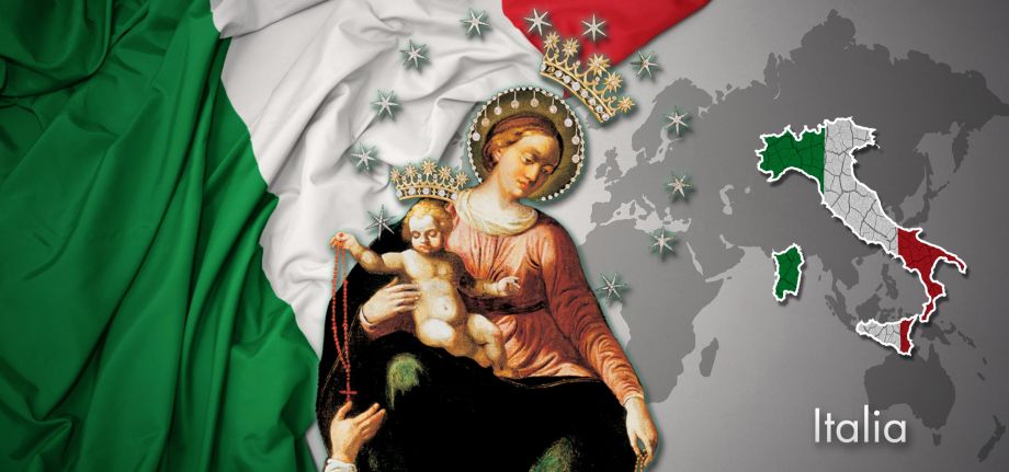 Em nome do Pai, do Filho do Espírito Santo. Amém. Ó Augusta Rainha das Vitórias, ó Soberana do Céu e da terra, com cujo nome alegram-se os céus e tremem os abismos, ó Rainha gloriosa do Rosário, nós teus filhos devotos, reunidos no teu Templo de Pompeia (neste dia solene1), derramamos os afectos do nosso