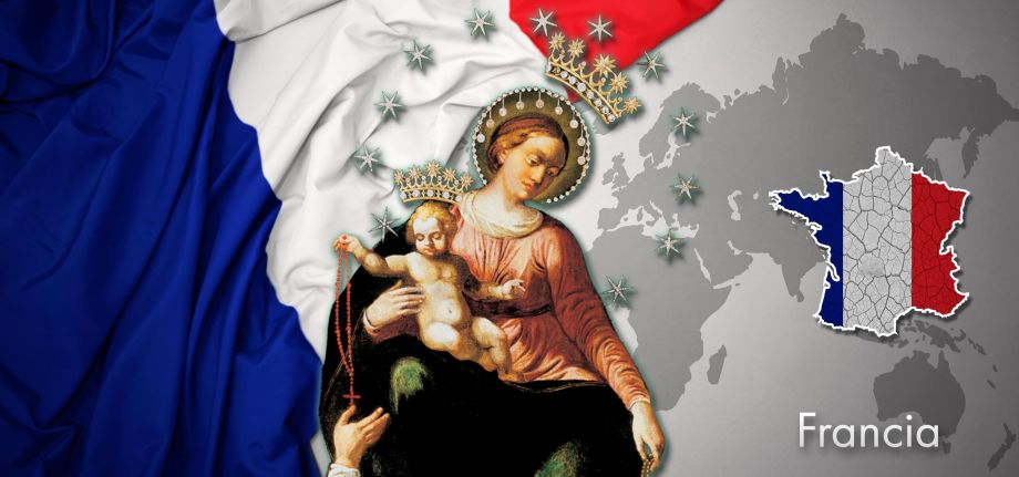 Au nom du Père, et du Fils, et du Saint-Esprit. Amen. Ô Auguste Reine des Victoires, * ô Souveraine du Ciel et de la Terre, * à ton nom se réjouissent les cieux et tremblent les abysses, * ô Reine glorieuse du Rosaire, * nous, tes fils dévoués, * réunis dans ton Temple de Pompéi (en ce jour solennel *) (1), nous épanchons les